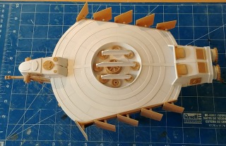 | edtherenderman | Scratch Built X Res | Build | 07-Feb-21 19:11 |  | | Views : 2185 | | Went off the rails over the last couple of weeks. After watching a bunch of episodes of Adam Savage Tested and Adam Savage One Day Builds on YouTube, I got inspired to build a “Kit Bash” spaceship. I bought a large sheet of 0.040 white styrene, some Weld-On #3 glue and an old ITALAEREI tank kit on ebay and using the 0.010 and 0.015 styrene I already had, started work. Didn’t really have a full design when I started. Just put together what I felt looked right. You can see how many parts came from the kit (tan) and were made by me (white). |