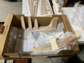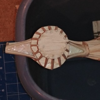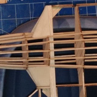 Fuse is mostly framed. I may still need to add some more stringers depending on how the infill goes. Note the cooling intakes on each side of the nacelles at the wing root. I modeled these in 3D and printed out on my FDM (Fused Deposition Modeling) printer. Not as high detail as I get with the DLP (Digital Light Processing) printing, but I don’t need the high resolution for this application. Plus, the FDM printer is using ABS plastic, which I can sand easily, and use acetone to smooth afterwards.