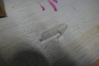 The lens is made from a strip of plastic packaging cut to width and wraped around an appropriately sixed dowel and lightly, really lightly, with a cigarette lighter. If your fingers feel hot, it's not lightly enough. Now you can cut it to fit.