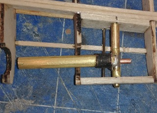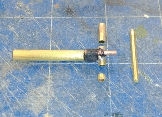 Close-up of landing gear. I was originally going to 3D print the gear, but after seeing how small they would be, I figured the printed parts wouldn’t be strong enough, so opted for soldered brass components.