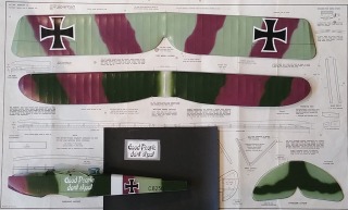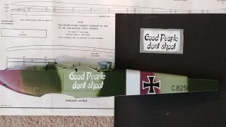 | edtherenderman | Guillows Series 200 - Rumpler C5 | Build | 29-Aug-21 21:49 |  | | Views : 3375 | | More paint and decals. I created the decals in my usual way, Photoshop, inkjet print onto waterslide decal sheets and overcoat with clear gloss acrylic. The upper surfaces and the fuse have all be sprayed with rattle can satin finish. |