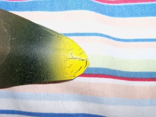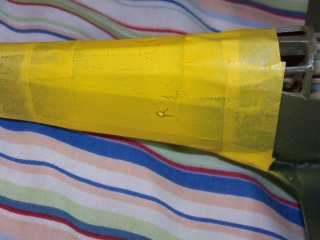rear fuselage. yellow crack in paint. i can't figure out why there's a crack in the paint. i'm painting in my basement. it