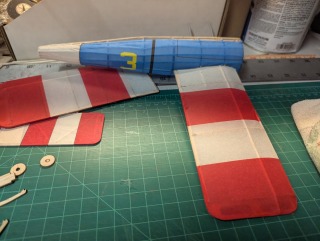 With the fuselage half covered you have a better idea of the colors.