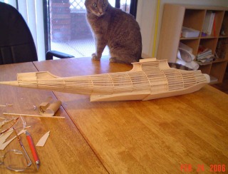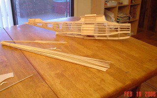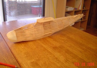 plastic nose piece full of clay glued on and stringers doubled