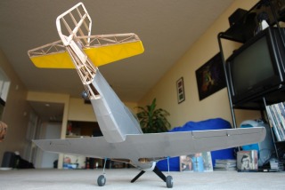 Starting to cover the tail. The fin is not glued, or covering of it finished yet.