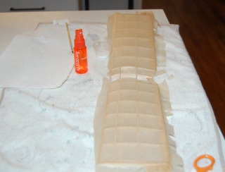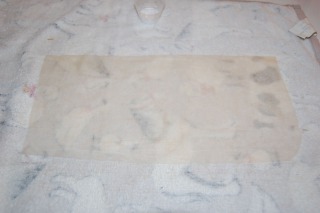 The crease lines are gone. I am covering wet, so I have cut slits in the tissue to relieve tension and prevent the tissue from puttling away.