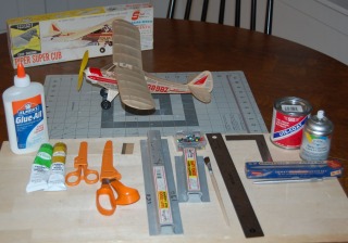 | scigs30 | Sterling Super Cub | Build | 04-Feb-24 07:32 |  | | Views : 1877 | | She is all done and weight as shown is 18 grams. Here are the tools I used to get her done. Yes that is an old Peck Polymers balsa building board.. I finished her with 2 coats of dope and decals. The decals are hard to use but get a good coat of Testors Glosscote before using. |