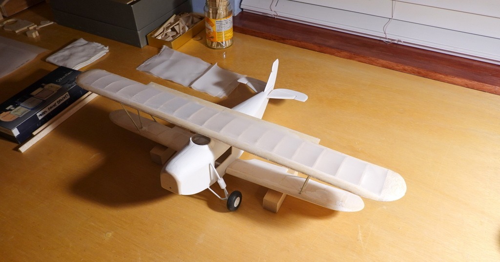 Upper wing now covered in Silk-span, lower wings tomorrow maybe.