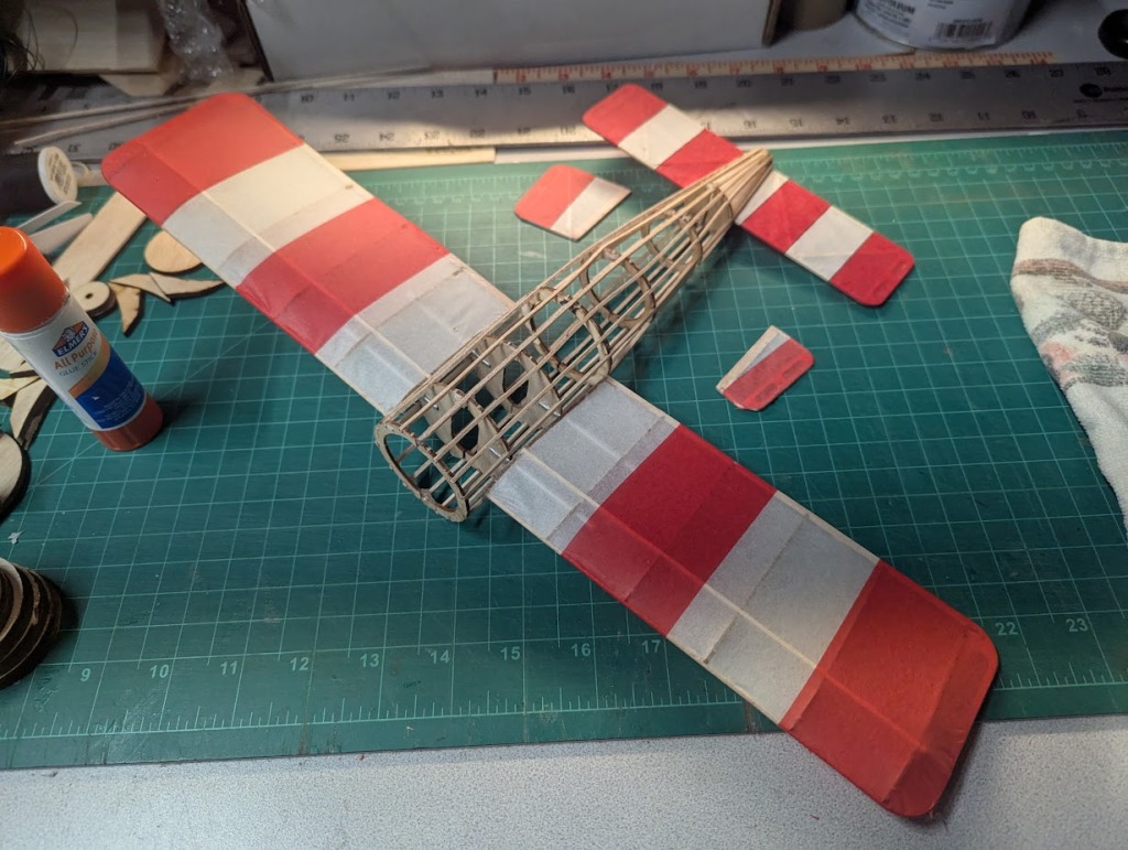 The wings and tail surfaces are covered and I predict that it will be flyable by the weekend...weather permitting.